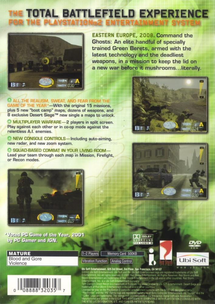 When new leaders in Russia attempt to rebuild the Iron Curtain, war escalates, casualties mount, hostages are taken, and the Ghosts are sent in. Take a highly skilled Ghost team through a series of missions that range from demolitions to search-and-rescue and all-out firefights for survival. You can carry dozens of standard and special-issue weapons such as the M16A2, the M4 carbine, and the fearsome and deadly OICW. Bring a friend into the firefight in split-screen multiplayer mode. Your team--and the world--is counting on you.