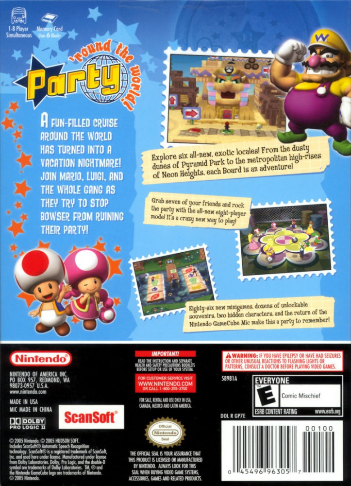 You can play more than 80 new minigames in the most recent Mario-themed party game, Mario Party 7. Mario and pals needed some time off, but they forgot to invite Bowser on their cruise. You can battle against an angry Bowser or up to seven of your friends on a single GameCube system. Mario Party 7 includes a few new characters and brings back microphone support from Mario Party 6.