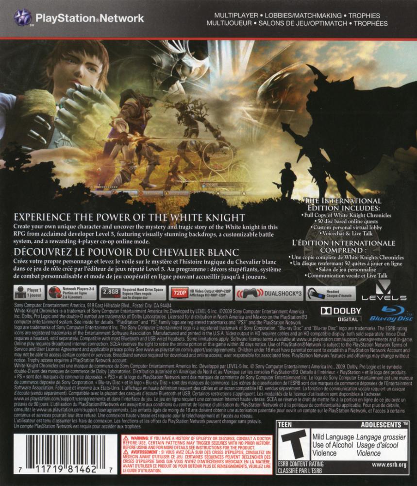 White Knight Chronicles is an epic fantasy tale about two kingdoms in midst of a longstanding war. The King of Balandor, wishing to put an end to the war, invites the duke of Faria to his castle to celebrate his daughter's coming of age. But this celebration is sabotaged by the Magi, a rogue sect seeking to steal the White Knight, an ancient weapon of war sealed beneath Balandor castle, in order to take over the world. During the ensuing chaos, a young man named Leonard accidentally unlocks the power of the White Knight as he attempts to save the princess. With this power, Leonard manages to fend off the Magi attack, but not before they escape with the princess. With the kingdoms in chaos, Leonard is entrusted with the mission to find the Magi and rescue the princess. With the help of his trusted companions, they travel throughout Balandor and beyond on a quest to save the princess before the Magi unlock the other knights. The journey is fraught with danger, with Magi warriors at every turn, mythical beasts and monsters to battle, and forbidden powers revealed. As Leonard learns more about the power of the Knight, he realizes that unsealing all of them could trigger a calamity that could end the world.