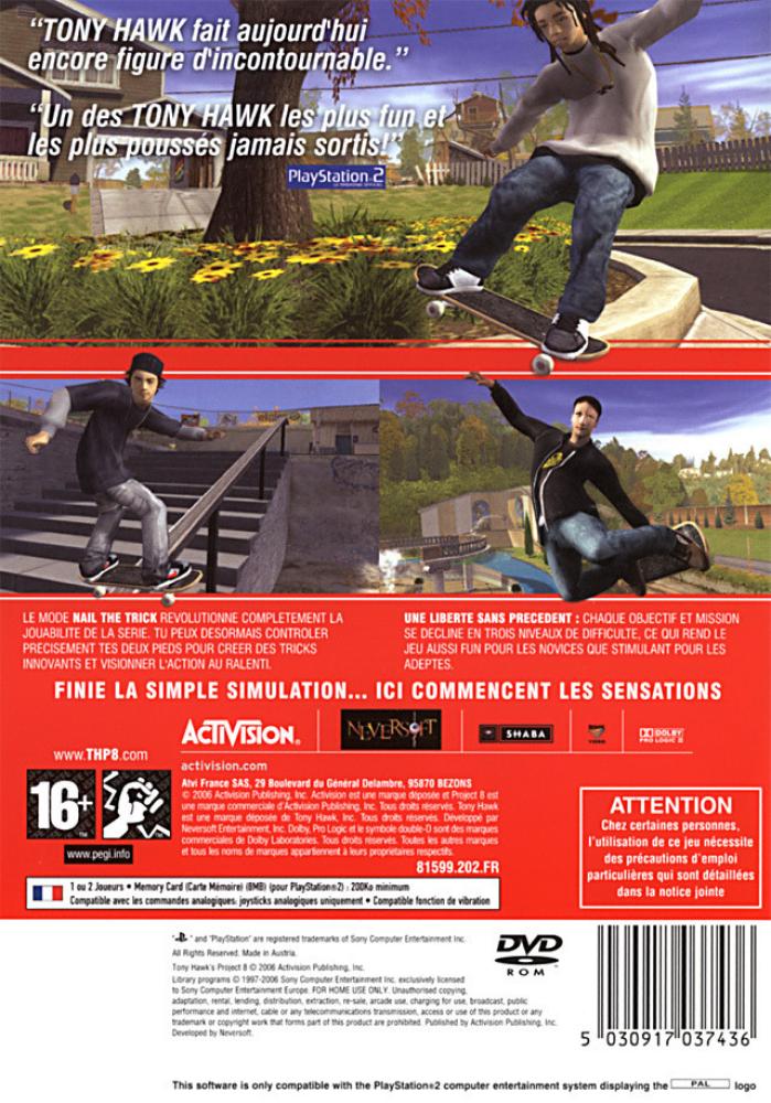 Reengineered from the ground up, Tony Hawk's Project 8 immerses players in the definitive skateboarding experience using ultra-realistic graphics, enhanced physics and responsive controls that simulate the feeling of skating with every trick and bail. The game challenges players to experience the intensity and pressure of skating against some of the world's top pros in true to life competitions as they aim to become the #1 skater.