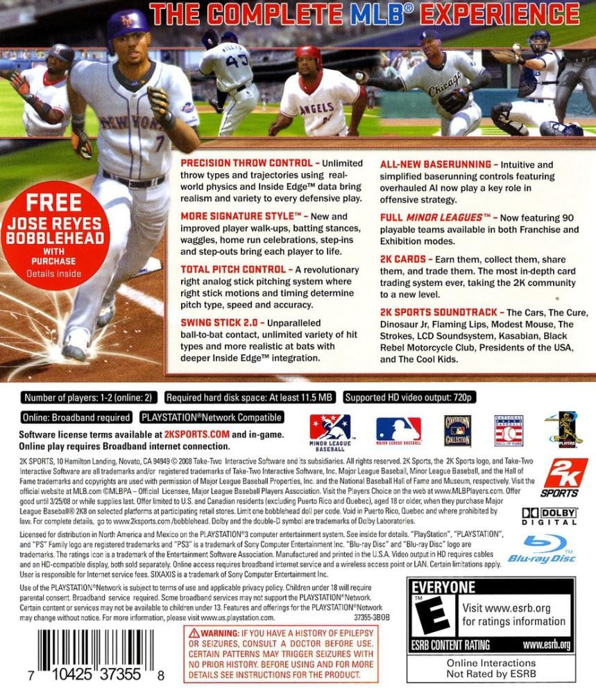Major League Baseball 2K8 returns to the diamond with the most complete MLB experience available on every major video game console. Revolutionizing your control of the 5 tools in baseball are brand new pitching, fielding and baserunning controls and completely overhauled batting interface. Featuring a totally unique trading card mode, robust Minor League system, all-new Signature Style animations for 2008, and more, Major League Baseball 2K8 brings a new level of fun to the virtual baseball world.