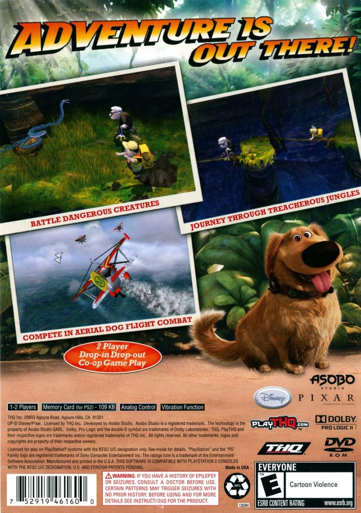 The UP video game takes players on an exotic adventure with Carl Fredricksen and his young sidekick, Wilderness Explorer Russell, as they set off on a wild journey through the undiscovered jungles of South America. Players experience all four main characters from the movie - Carl, Russell, Dug the lovable dog or Kevin the prehistoric bird - while playing as a single-player or with a friend cooperatively throughout the entire game. Players encounter exciting, new environments as they navigate through treacherous jungle terrains, battle dangerous creatures and trek the slippery slopes of the Amazonian Tepuis. In addition, the game also features multi-player game modes, including an epic level that will allow up to four players to compete in aerial combat.