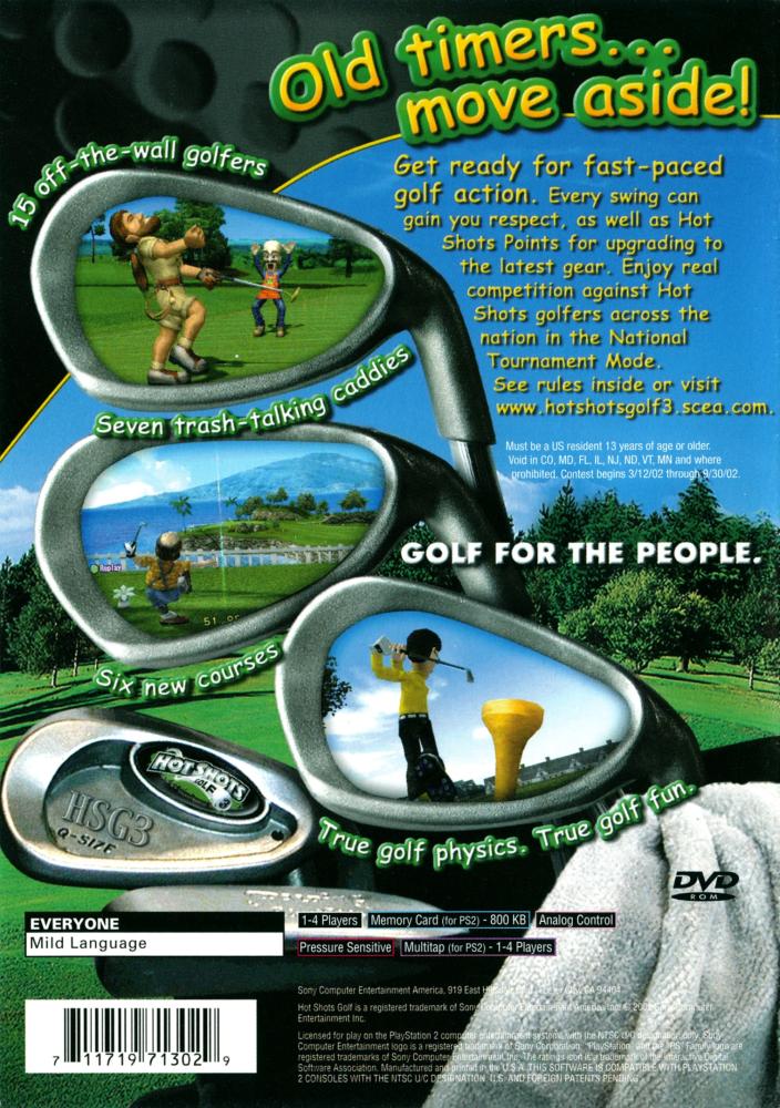 Play golf without all the restrictions of a stuffy resort. The third installment in the Hot Shots Golf series features all the off-the-wall characters, entertaining caddies, and trash-talking that would normally get you kicked off a pro golf course. Now you'll have 15 characters to choose from including seven caddies to entertain you--no matter how bad your score is. Earn "green points" to buy enhanced golf equipment and insane golf gadgets. Hot Shots Golf 3 puts the fun back into golf.