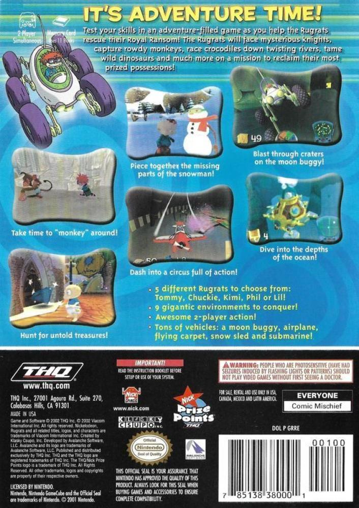 Angelica has claimed herself Queen of the Play Palace 3000 and has taken the Rugrats' most prized possessions. Now, you'll join Tommy, Chuckie, and the rest of the Rugrats as they wander through magical worlds to reclaim what is rightfully theirs. You can travel to nine fantasy environments--ranging from the snow and the ocean to the jungle and the moon--to discover bonus levels and multiplayer games. The game's various modes will have you flying on a magic carpet, racing a snowman down a mountain on a sled, cruising on craters in a moon buggy, and more.