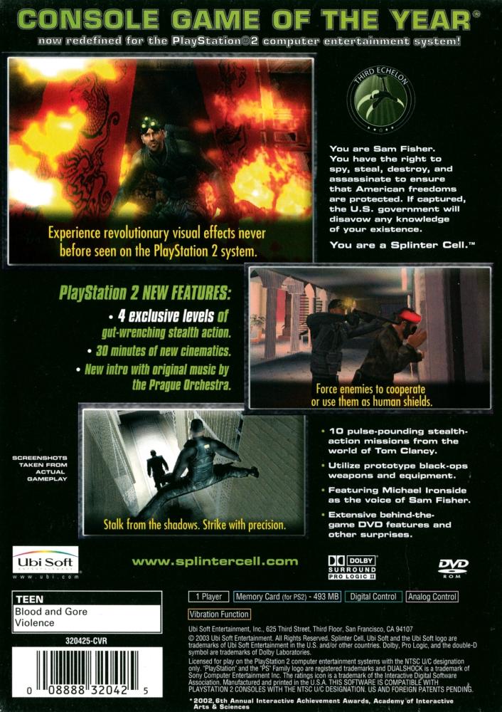 Infiltrate terrorists' positions, acquire critical intelligence by any means necessary, execute with extreme prejudice, and exit without a trace. In Tom Clancy's Splinter Cell, you are Sam Fisher, a highly trained secret operative of the NSA's secret arm: Third Echelon. Suit up with the latest classified field operative gear and weapons as you travel through diverse mission objectives. The world's future is in your hands, as cyber terrorism and international tensions are about to explode into WWIII.