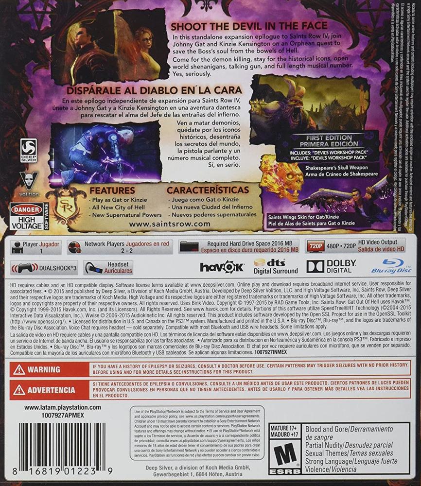 After the space faring antics of Saints Row IV, many fans asked what we could do next... the answer? Shoot The Devil in the face. Play as either Johnny Gat or Kinzie Kensington as you tear apart Hell in a quest to save the leader of the Saints soul. Historical icons, old friends, older enemies, a talking gun, a full length musical number, and a whole lot of other shenanigans all await you in the open world standalone expansion playground that is Saints Row: Gat out of Hell. Key features: