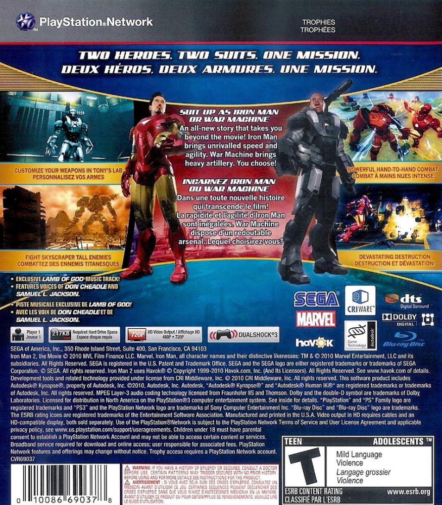 Play as Iron Man or, for the first time ever, War Machine in this brand-new story which thrusts you deep into the Iron Man comic world adding to the excitement of the upcoming Iron Man 2 movie. Battle epic enemies, like the classic Iron Man villain Crimson Dynamo, only featured in the game, and an incredible final boss of truly staggering, skyscraping scale. In the end, the fate of the world will be left in Iron Man and War Machines powerful hands and they must battle to save it from destruction.