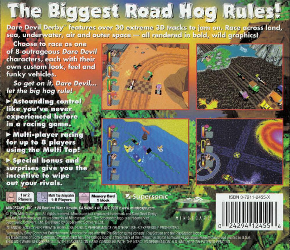 Dare Devil Derby features over 30 extreme 3D tracks to jam on. Race across land, sea, underwater, air and outer space all rendered in bold wild graphics!