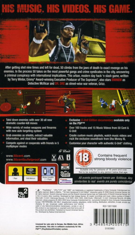 You can play as 50 Cent as he blasts his way through the streets of New York in 50 Cent: Bulletproof G Unit Edition. Your path will cross those of drug and weapons dealers, informants, and a myriad of other shady characters as you and the G-Unit take on some of the largest crime families in New York. The game features many acrobatic moves for chasing enemies, dodging their attacks, and taking them out. The story was written by Terry Winter, the executive producer of The Sopranos. 50 Cent also contributes unique content to the game in the form of music tracks, freestyles, and in-game dialogue.