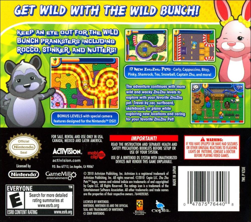 ZhuZhu Pets: Featuring The Wild Bunch features all new super cute action with fun and furry pals. Fans will get to care for and play with all of their new Wild Bunch friends plus the original ZhuZhu hamsters. ZhuZhu Pets: Featuring The Wild Bunch features an expanded Zhu-niverse and new, action packed sidescrolling gameplay.