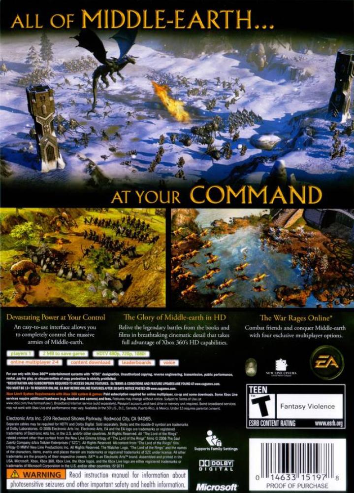 You can take control of fantastic beasts and heroes from the Lord of the Rings series in the real-time strategy sequel, The Lord of the Rings, The Battle for Middle-earth II. New races, heroes, and battlegrounds let you command battle in all-new ways. Build your own castle or hero and command your forces on land and sea with new "smart formations" and battle lines. In addition to playing through the campaign mode, you can challenge other gamers to battles online.