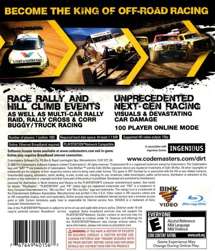 After a two-year break for the series, Codemasters Studios' designers have created a reinvigorated McRae experience. The new Colin McRae title goes beyond the series' point-to-point rallying to deliver the most diverse selection of extreme off-road competitions. Sensational gravel, mud and dirt racing events from the world over include perilous Hill Climb and collision-packed Rally Cross events. International rallying competitions are also featured, with official cars on tracks based on real roads and locations around the globe. The title also expands on beat-the-clock racing and includes events with multiple cars on track to satisfy anyone who wants to push their on-the-edge driving just that bit further.