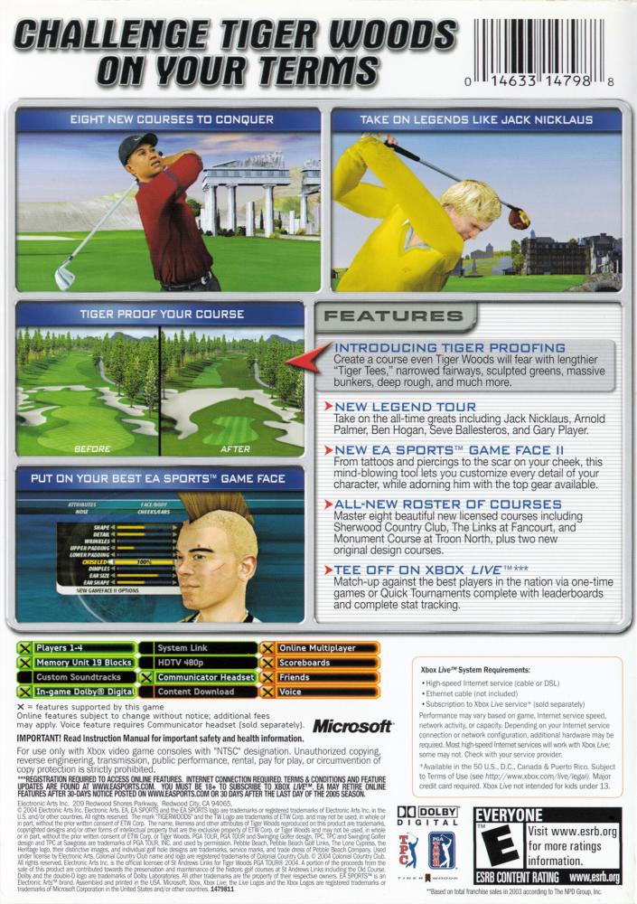 Challenge professional golfer Tiger Woods to challenging matches in Tiger Woods PGA Tour 2005. This time, you can modify course dynamics and add longer trees, tighter fairways, undulations to greens, deeper bunkers, and more. The game's EA Sports Game Face features nonproportional bone scaling and texture blending to provide more realistic looks. After creating your own golfer and making a name for yourself, unlock the chance to tee off against some of golf's greatest legends, including Arnold Palmer, Jack Nicklaus, and Ben Hogan.