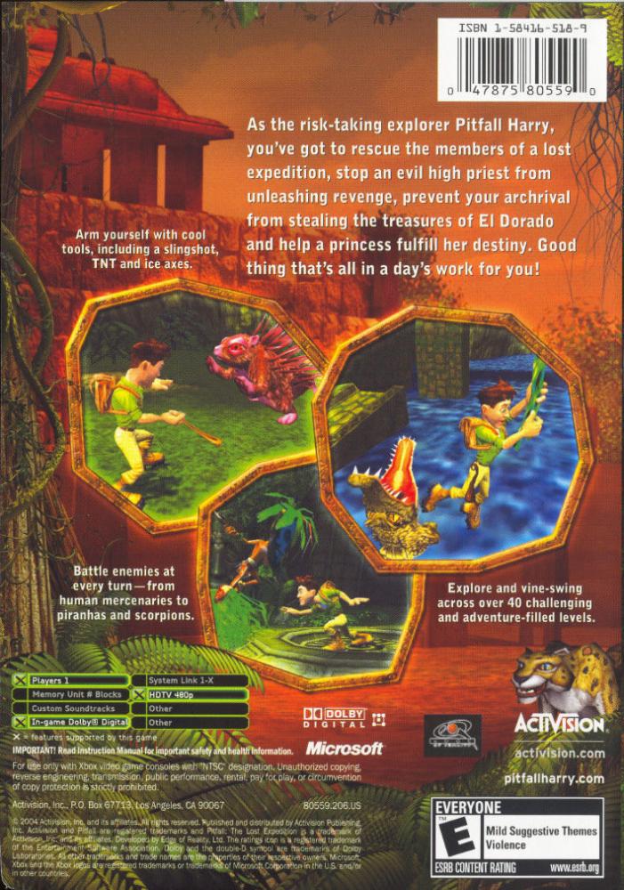 Delving deep in the Peruvian Jungle, you assume the role of Pitfall Harry--a fearless, rough-and-ready treasure seeker who battles evil using his athletic ability and a knapsack filled with adventure gear. Your mission: Race against a rival explorer to find hidden treasures, which could spell doom for you and your friends if they fall into the wrong hands. The game challenges you to explore an obstacle-filled world featuring over 50 perilous levels, including lush rainforests, creature-ridden caves and vast glacial mountains. You'll be swinging on vines, avoiding crocodiles and dodging rolling logs as you unearth artifacts and use your cunning to defeat dangerous foes.