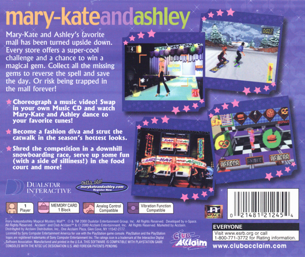 Mary-kate and Ashley's favorite mall has been turned upside down. Every store offers a super-cool challenge and a chance to win a magical gem. Collect all the missing gems to reverse the spell and save the day. Or risk being trapped in the mall forever!