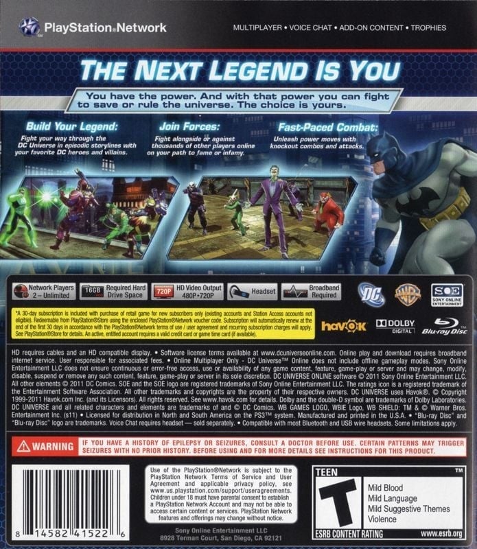 In DC Universe Online, players will be thrust headlong into an action-packed online world based on the heroes, villains and landmarks of the DC Universe. In the game, players step into the role of the next legendary superhero or villain and are given the choice to save or conquer the universe online. Along the way, players will be fighting alongside or against iconic DC characters as well as other players for the fate of the DC Universe.