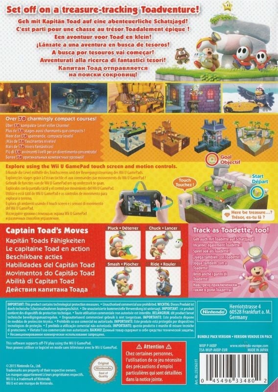 The intrepid Captain Toad sets off on his own adventure for the very first time through a wide variety of tricky, enemy-infested, maze-like stages to find hidden gems and nab elusive gold stars.