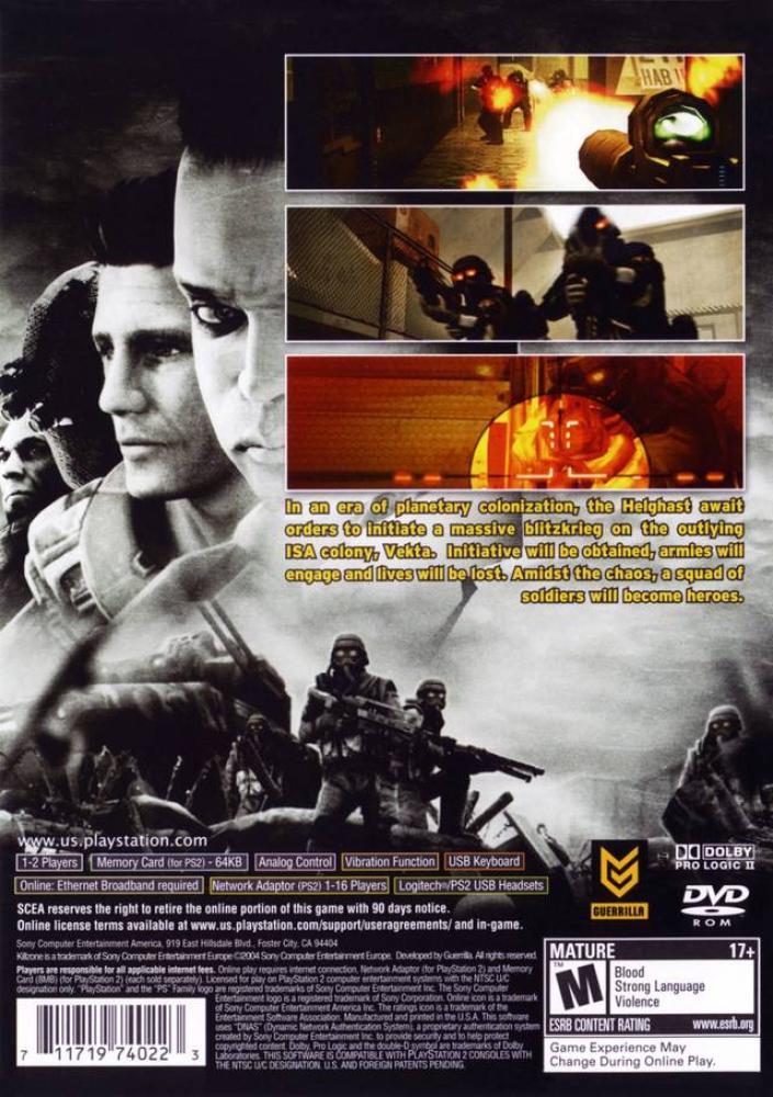 Set in the near future during a period of planetary colonization, Killzone drops you in the middle of a war between the ISA Command and a militaristic separatist faction, the Helghast. As one of four ISA members, your initial objective is to escort a high-ranking official to an evacuation point. You can experience several gameplay modes, including single-player, multiplayer (team-based and competitive), and online play for up to 12 players. Players can equip themselves with an armory of more than 27 different weapons based on modern technology.