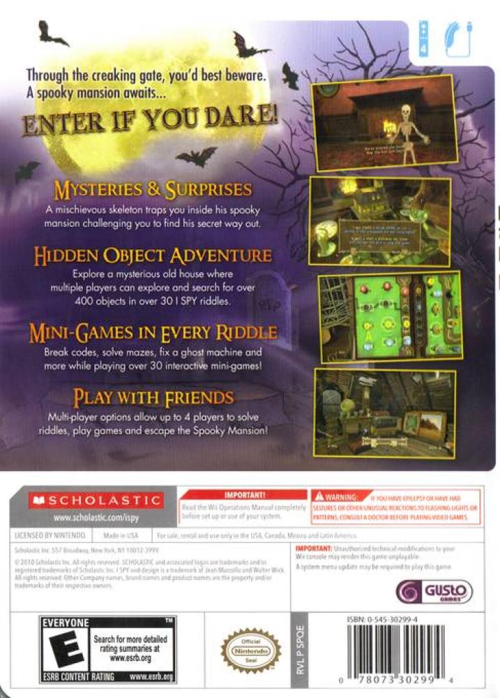 Through the creaking gate, you'd best beware. A spooky mansion awaits...Enter if you dare! A mischievous skeleton traps you inside his spooky mansion challenging you to find his secret way out. Explore a mysterious old house where multiple players can explore and search for over 400 objects in over 30 I SPY riddles. Break codes, solve mazes, fix a ghost machine and more while playing over 30 interactive mini-games! Multi-player options allow up to 4 players to solve riddles, play games and escape the Spooky Mansion!
