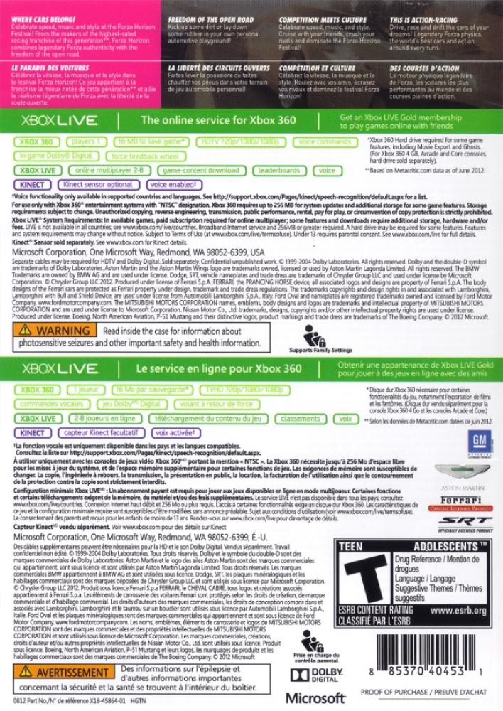 Forza Horizon combines legendary Forza authenticity with a festival atmosphere and the freedom of the open road. Forza Horizon offers an immersive pick-up-and-play open road racing experience and features the unrivaled realism, diversity, and innovation that are hallmarks of the Forza franchise.