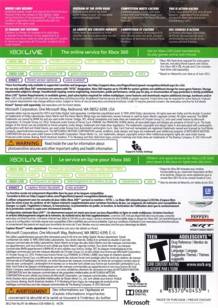 Forza Horizon combines legendary Forza authenticity with a festival atmosphere and the freedom of the open road. Forza Horizon offers an immersive pick-up-and-play open road racing experience and features the unrivaled realism, diversity, and innovation that are hallmarks of the Forza franchise.