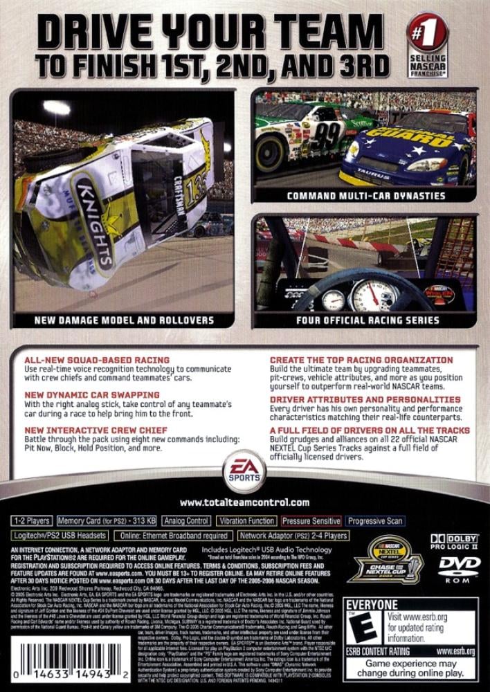 NASCAR 06: Total Team Control lets you go beyond the simple racing experience and play a part in a racing team. You'll communicate with and take control of other team members during a race as well as communicate with your pit crew. Customize a driver and build a team, and then take your drivers through 22 real Nextel series tracks and 14 fantasy ones. Use the game's voice recognition feature to give verbal commands to your crew chief. In addition to single-player, NASCAR 06 features online multiplayer modes for up to four players.