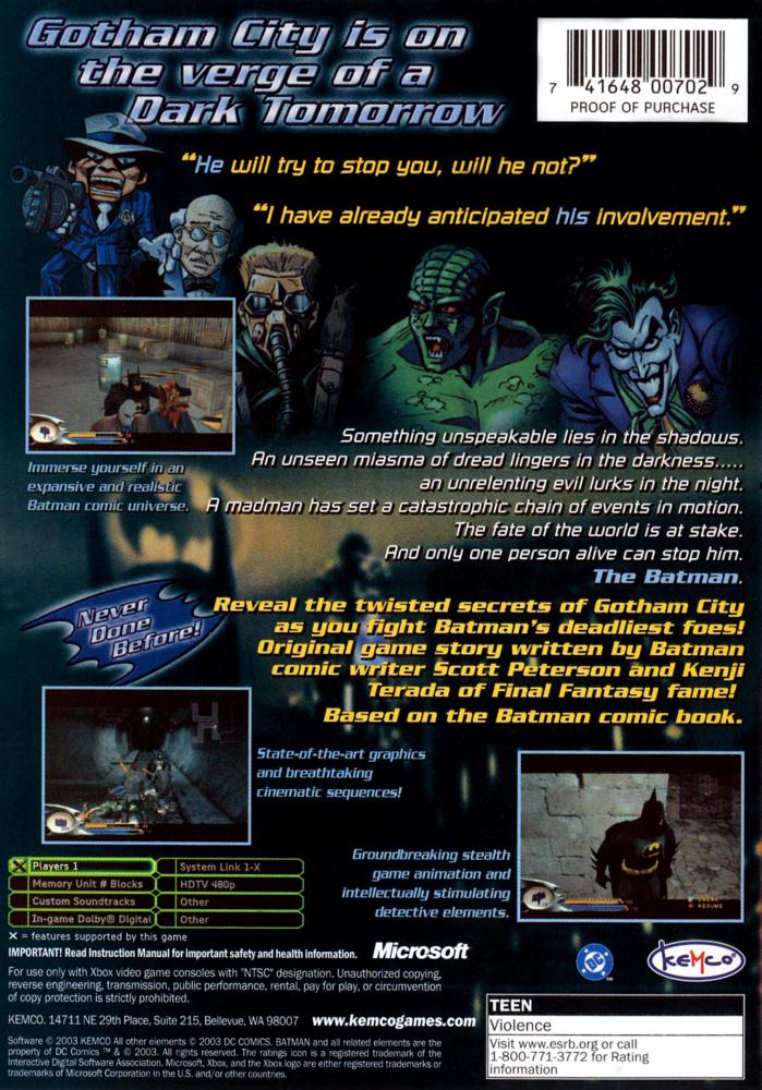 Batman, the Dark Knight detective of Gotham City, is back in an all-new adventure. In Batman: Dark Tomorrow, it's up to Batman to solve the mystery and save the day. The legendary Caped Crusader must use all his mental and physical skills, batglider capabilities, devices from his utility belt, and sleuthing prowess to fight crime and defeat enemies. You must battle both new and familiar enemies, including Mr. Freeze, Poison Ivy, and the Joker. But in some missions, stealth is just as important as brute force.