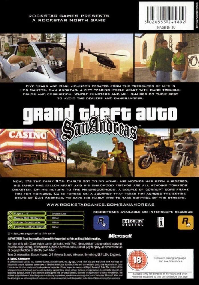 Five years ago Carl Johnson escaped from the pressures of life in Los Santos, San Andreas... a city tearing itself apart with gang trouble, drugs and corruption. Where filmstars and millionaires do their best to avoid the dealers and gangbangers.