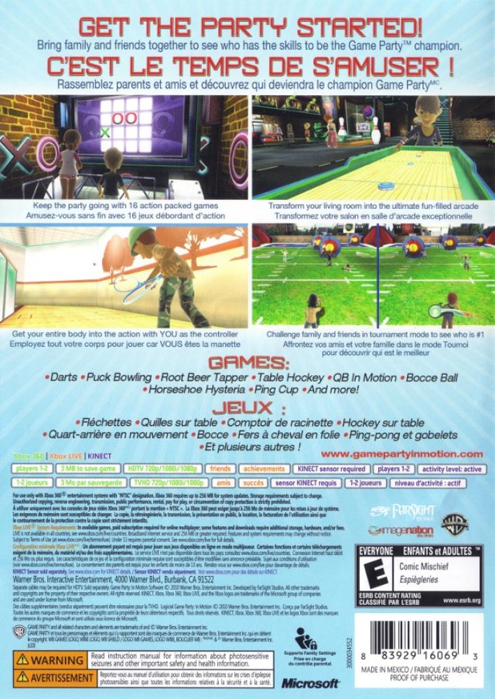Game Party: In Motion lets players engage in true-to-life motions with games appealing to people of all ability levels, ranging from sports like Hoop Shoot and Darts to arcade and party games including Rootbeer Tapper, Table Hockey and more. Players mimic the actions and gestures of real-life activities allowing them to move their arms, legs or full bodies in natural motions to control the game.