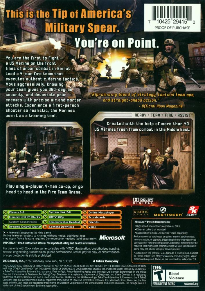 Created under the direction of the US Marine Corps, First to Fight puts you behind the barrel of an M16-A4 as a Marine fireteam leader. Now it's up to you to lead your four-man team through the dangerous streets of Beirut in modern urban combat. In this first-person shooter, you can use the Marine Air Ground Task Force to call for fire and support from Cobra helicopters, mortar teams, other fireteams, tanks, and AAVs. Develop true military tactics such as laying suppressing fire, flanking enemies, separating leaders from enemies, and more.