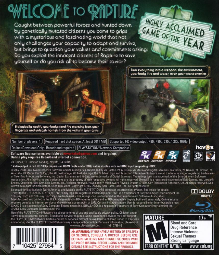BioShock is the first-person shooter where everything is a weapon. Set in a failed underwater utopia, BioShock gives complete freedom to turn the environment, the enemies, even water and fire into powerful tools against your foes.