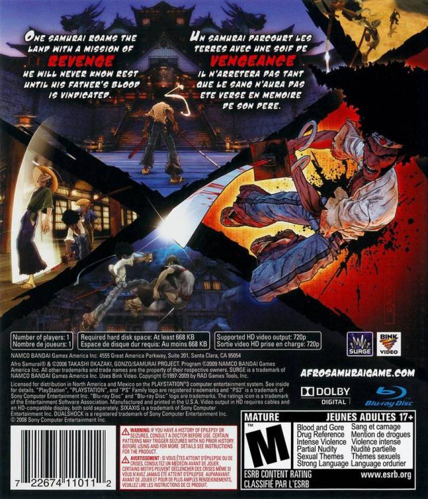 He who possesses the #1 Headband, will rule the world! Afro Samurai is the cutting edge game that delivers a new kind of cinematic game experience, a living episode that offers addictive, immersive and compelling gameplay that's literally dripping in style. Join Afro in his epic hunt for revenge to avenge the murder of his father by the current owner of the #1 Headband. Afro Samurai blends traditional Japanese culture, funky technology and hip hop to create a brutally fresh interactive experience. The hit, animated TV series now comes to life!