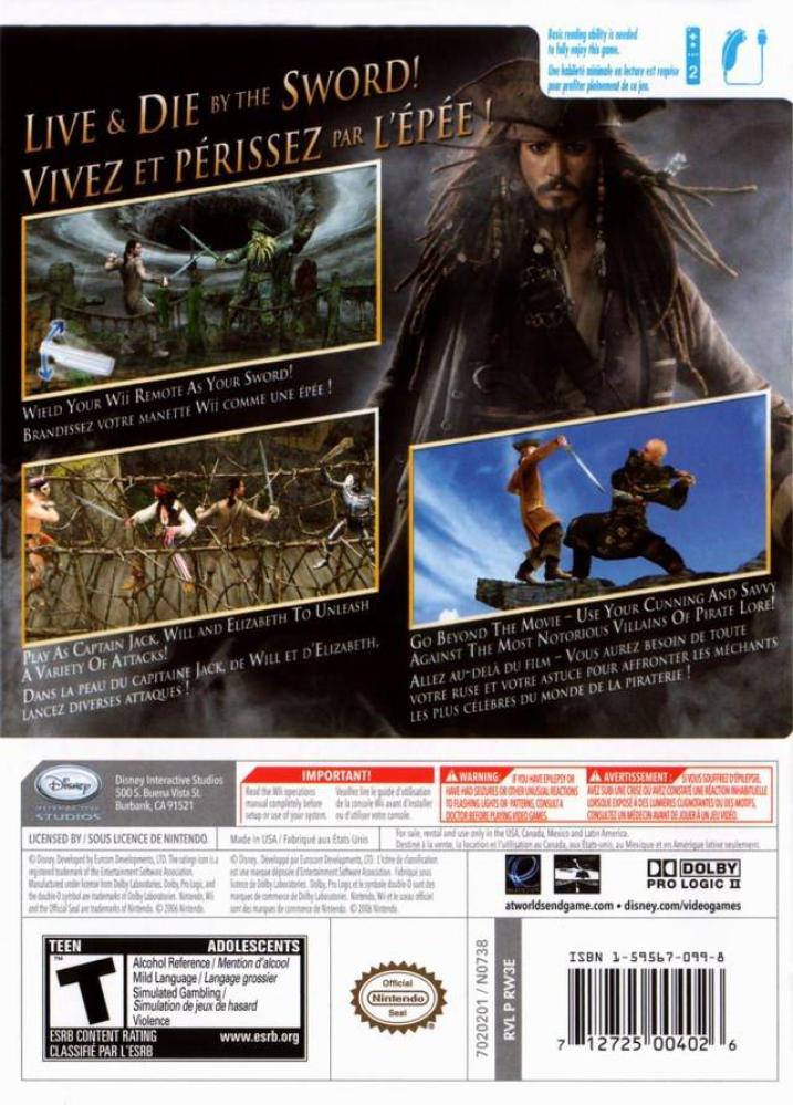 At World's End video games from Disney Interactive Studios invite players to "live and die by the sword" as they venture to the worlds of the films and beyond while playing as Captain Jack Sparrow, Will Turner and Elizabeth Swann.