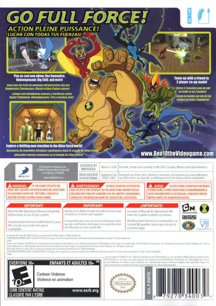 In BEN 10: ALIEN FORCE The Game, players work to find Grandpa Max and stop a diabolical Highbreed alien plot as they battle more than 20 types of enemies, including Highbreed invaders and DNAliens. Gamers take control of Ben and his new alien forms Swampfire, Jet Ray, Humungousaur, Spidermonkey, and Big Chill to employ distinctly different and complex powers to manipulate fire, swim underwater, grow more than 60 feet tall, stick to walls, fly at mach speed, plus lots more! Gamers will also harness cousin Gwen's new talent to create an energy shield and use it to protect and attack, as well as Kevin Levin's ability to absorb materials such as concrete, wood and metal to create an impenetrable shell on his body. BEN 10 ALIEN FORCE The Game is a fast-paced, 3D side-scrolling action adventure that offers eight playable characters, an unlimited combo system, and puzzles and challenges that will engage players of all levels for hours at a time. The Nintendo DS version will offer alternate playable alien forms including Goop and Echo Echo, giving players additional unique powers to command and explore.