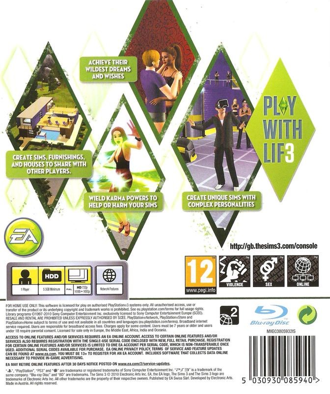 The Sims 3 allows you to immerse your unique Sims in an open living neighborhood right outside their door. The initial feature-set unveiled includes the new seamless, open neighborhood, new Create-A-Sim, new realistic personalities(every Sim is a unique person, with a distinct personality) and new unlimited customization, You can customize everything!