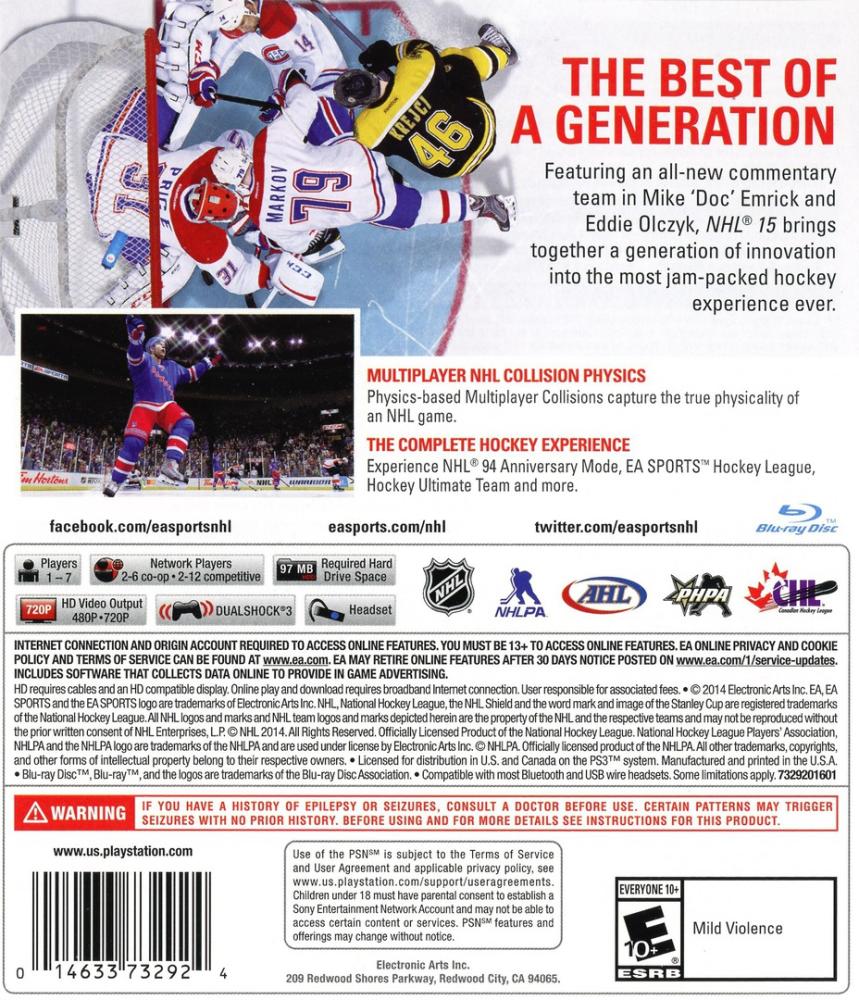 NHL 15 is the start of a new generation of hockey video games, where the sights, sounds, and feel of the fastest team sport on the planet come to life in a way you've never experience before.