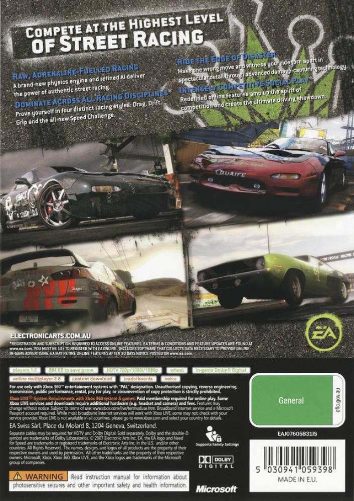 Need for Speed ProStreet is a ground-breaking Need for Speed experience where you're thrust to compete head to head against the best street racers in a multitude of racing showdowns. Need for Speed ProStreet accelerates street racing culture by providing the ultimate stage for the pursuit of street racing supremacy.