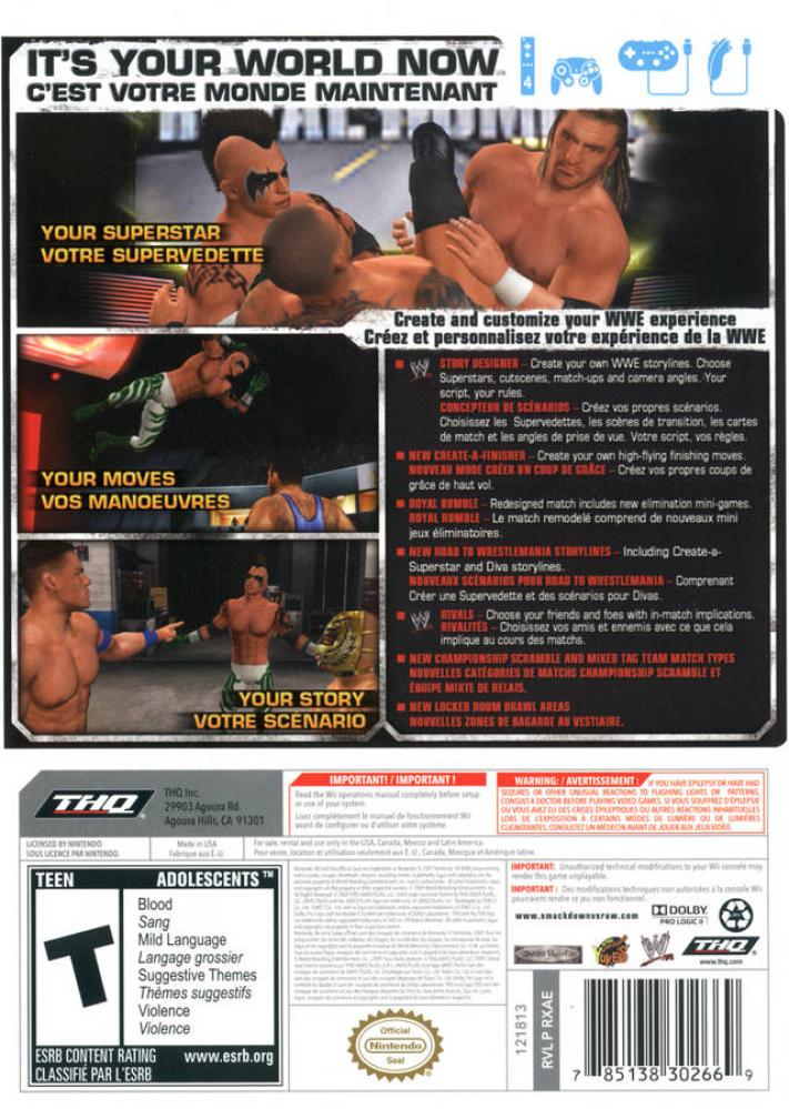 Create your own Superstar from the ground up and rise from obscurity to legendary fame as you face the Superstars of SmackDown, Raw and ECW. Adjust your Superstar’s appearance, unlock new clothes, accessories, tattoos and signature moves, boost his fighting capabilities and show the crowd what you’re made of! Additionally, adopt the role of your favorite WWE Superstar and enter customizable Exhibition matches for some quick action.