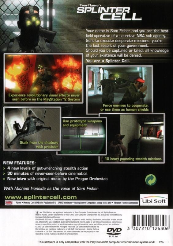 Infiltrate terrorists' positions, acquire critical intelligence by any means necessary, execute with extreme prejudice, and exit without a trace. In Tom Clancy's Splinter Cell, you are Sam Fisher, a highly trained secret operative of the NSA's secret arm: Third Echelon. Suit up with the latest classified field operative gear and weapons as you travel through diverse mission objectives. The world's future is in your hands, as cyber terrorism and international tensions are about to explode into WWIII.
