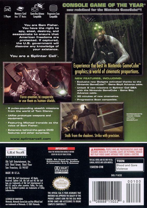 Infiltrate terrorists' positions, acquire critical intelligence by any means necessary, execute with extreme prejudice, and exit without a trace. In Tom Clancy's Splinter Cell, you are Sam Fisher, a highly trained secret operative of the NSA's secret arm: Third Echelon. Suit up with the latest classified field operative gear and weapons as you travel through diverse mission objectives. The world's future is in your hands, as cyber terrorism and international tensions are about to explode into WWIII.