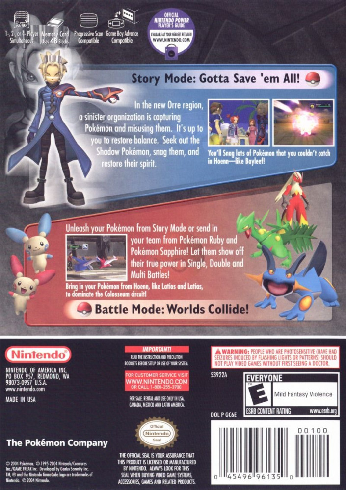 In the Orre Region a sinister organization is capturing Pokémon and misusing them. It's up to you to restore balance. Seek out the Shadow Pokémon, snag them, and restore their spirit.
