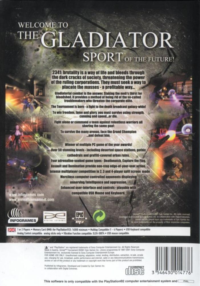 From the creators of Unreal comes Unreal Tournament, a competition that tests your reflexes and competitive spirit in deadly arenas. Battle 15 of your friends or customizable bots in over 30 different levels, such as pirate ships, waterfronts, speeding trains, and floating castles. Multiplayer modes include Capture the Flag, Assault, Domination, and new Deathmatch variations. With enhanced weapons--including the Impact hammer, which squashes your opponent to mush, and the Redeemer, a rocket-powered nuke--expect the body count to be high.