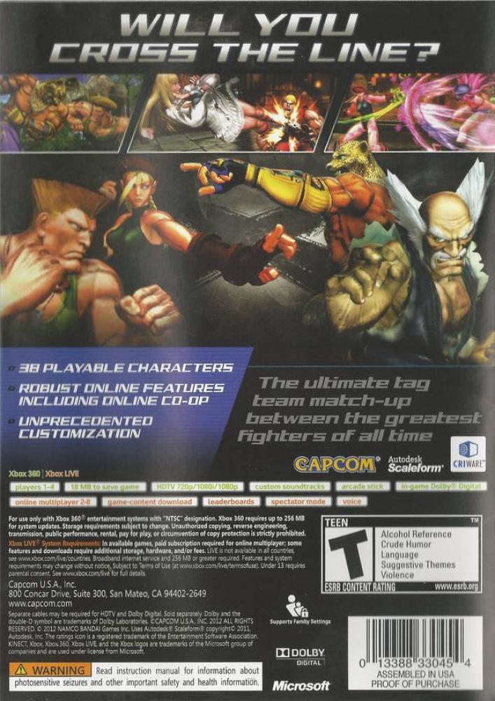 "Street Fighter" is best known for its well-polished 2D game play, and "Street Fighter IV" is an exemplary addition to the series. And now, based on the "Street Fighter IV" engine, the "TEKKEN" characters will be stepping into the ring to fight. Featuring two on two "Tag Team Fighting", and together with Battle and Training Modes, this title will push the series beyond its limits.