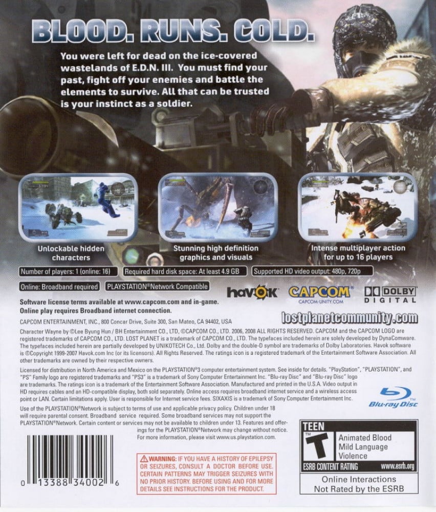 In Lost Planet, human snow pirates navigate VS (Vital Suits) through hostile ice-covered environments, fighting against the indigenous Akrid creatures for the precious thermal energy they need to survive. For one such pilot named Wayne, death almost seemed imminent until he was fortunately rescued. However, he can only remember a few fragments of his past including the slaying of his father by the monstrous beings. Yet under the veil of ice, a devious plan has been set into motion for the termination of all Akrid and snow pirates alike. What really happened to Wayne? Who is plotting the destructive scheme? Encounter valuable allies and dangerous enemies on Wayne's search for the truth.