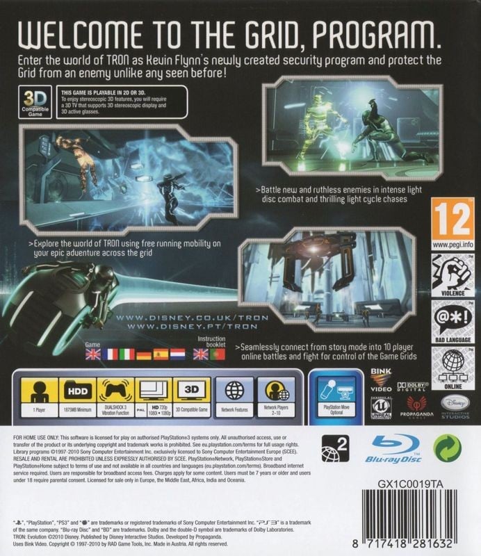 TRON: Evolution is an immersive 3rd person action-adventure game that pulls the player into the unique digital world of TRON. Gamers explore TRON's cities using the free running phenomenon Parkour, navigate among unique rebel factions, and fight an epic battle against a dictator's seemingly unstoppable army in the prequel story to the blockbuster film, TRON: Legacy.