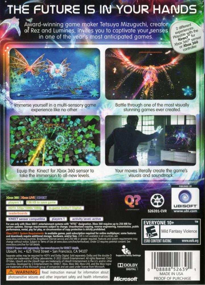 Child of Eden thrusts the player into the center of a battle to save Project Lumi, a mission to reproduce a human personality inside Eden, the archive of all human memories. As the project nears completion, the archive is invaded by an unknown virus. The player's mission is to save Eden from the virus, restoring hope and peace.