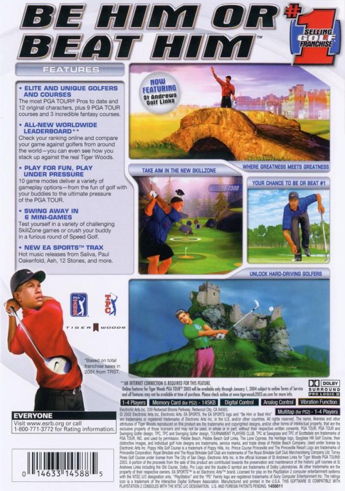 From towering drives to picture-perfect putts, the essence of golf has been captured in Tiger Woods PGA Tour 2003. The game features plenty of challenging courses such as Pebble Beach Golf Links and Royal Birkdale. Plus, you can choose from a variety of professional golfers, each with their own strengths and weaknesses. Hit the course as Tiger Woods or put your skills up against his in a one-on-one showdown, but either way, be prepared to bring your best game.