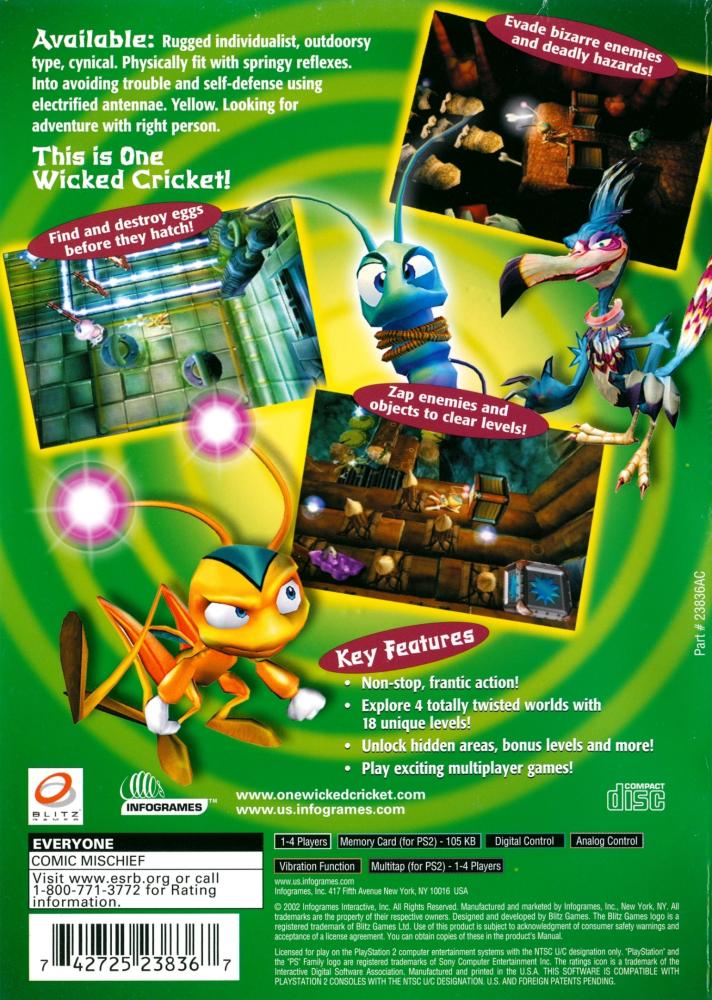 In Zapper, you play a small creature that embarks on a great quest. Zapper is a cricket in search of brother Zipper, who was kidnapped by the evil Maggie the Magpie. Through 18 twisted levels, you'll evade bizarre enemies and deadly hazards using your electrified antennae and springy reflexes. Zap your foes, explore your surroundings, and find and destroy eggs before they hatch. Zapper's intense action continues as you unlock hidden areas, bonus levels, and play multiplayer games.