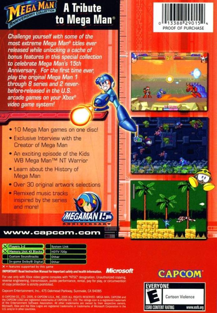 For 15 years, Mega Man games have appeared on consoles, and now you can play ten of them on one disc. Mega Man Anniversary Collection includes the first eight Mega Man games plus two that were never-before-released in the U.S. See how Mega Man has crossed into other media by watching unlockable bonus features, including footage from the original Mega Man TV Series, over 30 original artwork selections, and remixed music tracks inspired by the series.