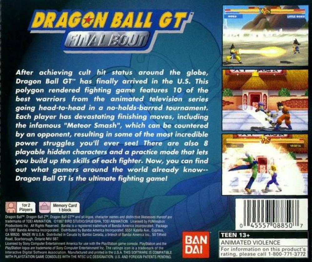 After achieving cult hit status around the globe, Dragon Ball GT has finally arrived in the U.S. This polygon rendered fighting game features 10 of the best warriors from the animated television series going head-to-head in a no-holds-barred tournament. Each player has devastating finishing moves, including the infamous "Meteor Smash", which can be countered by an opponent, resulting in some of the most incredible power struggles you'll ever see! There are also 8 playable hidden characters and a practice mode that lets you build up the skills of each fighter. Now, you can find out what gamers around the world already know -- Dragon Ball GT is the ultimate fighting game!